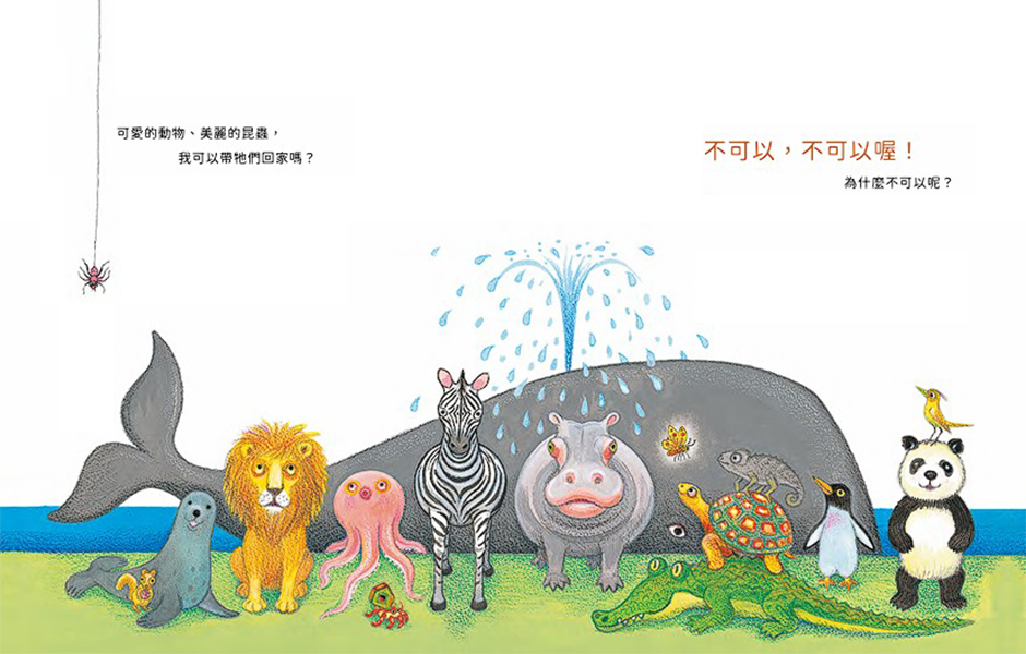 每个小朋友都有过异想天开、想把全世界的可爱动物都带回家的愿望,但这些动物不一定那么「居家」。当妈妈说不可以,爸爸也说不可以,几米用贴近孩子的角度跟孩子说,为什么「不可以」!
